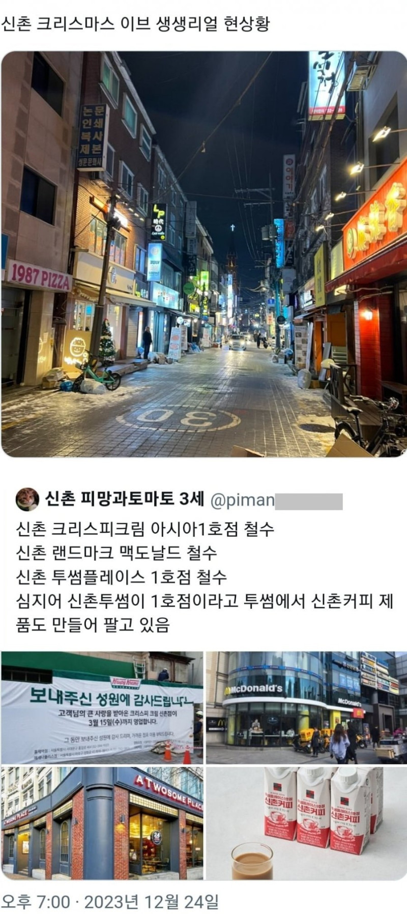 분류 안습 신촌 크리스마스 이브 생생리얼.jpg 작성자 정보 작성자 드슈 작성일 2023.12.25 14:41 컨텐츠 정보 조회 3,409 목록 목록 게시물 옵션 글수정 글삭제 본문 . 관련자료 댓글 0개 등록된 댓글이 없습니다. 로그인한 회원만 댓글 등록이 가능합니다. 목록 목록 게시물 옵션 글수정 글삭제